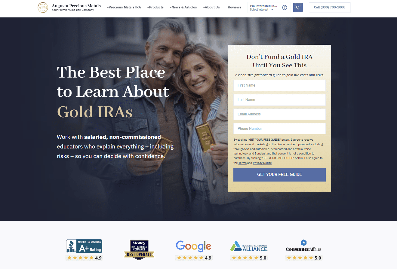 Augusta Precious Metals offers a free educational guide designed to help you understand how precious metals IRAs work, what to watch out for in the industry, and what questions to ask before speaking with any company — with no pressure and no obligation.